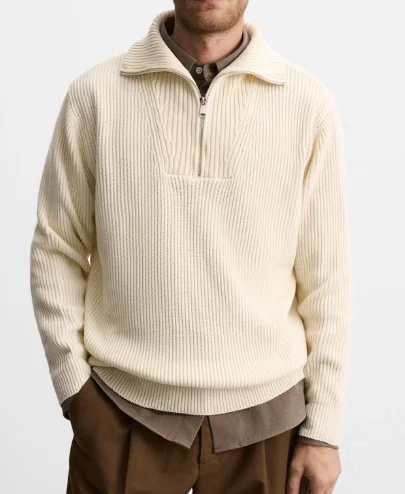 New Style Long Sleeve Pullover Men’s Turn-Down Collar Jacquard Sweater Knit Sweater Polo Neck Knitwear Sweater for Men