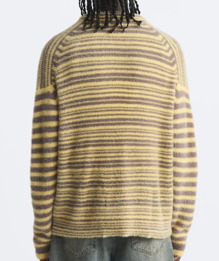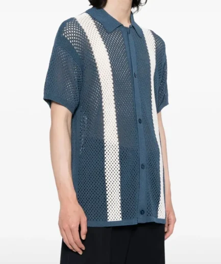 New Stripe Turn-down Collar Cool Knitted Button Sweater for Men Short Sleeve Open Front Button up Cardigan Man Knit Sweater