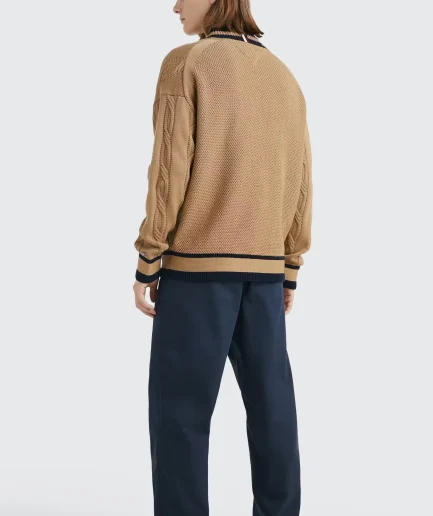 Design Cricket Golf Tennis Varsity Sports v Neck Loose Cable Knit Sweater Men