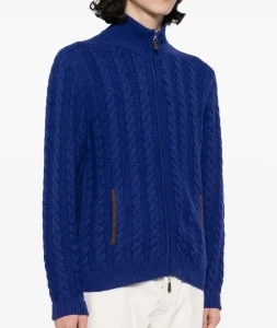 Full Zip Men’s Business Jacket Open Neck Cotton Casual Knit Crew Neck Sweater