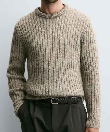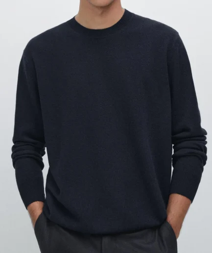 Design Men Woollen Sweater Winter Long Sleeve Crew Neck Texture Panelled Merino Wool Sweater