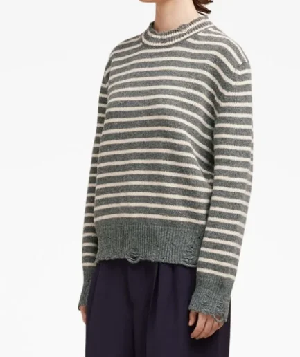 Green and White Color Round Neck Pullover Knit Sweater for Man Long Sleeve Stripe Safety Knitted Sweater With Good for Man