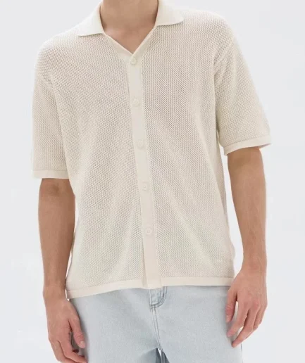 High Quality Lightweight Summer Cotton Knit Button Shirt for Man Comfortable V Neck Cool Simple Thin Short Sleeve Man Sweater