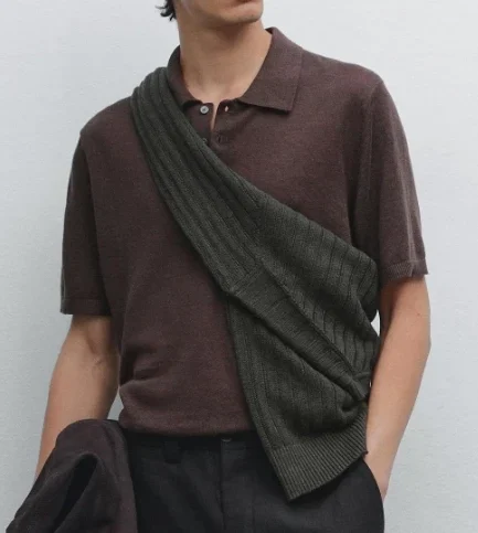 High Quality Men’s Knit Pullover Shirts Short Sleeve Quarter Shirt Soft Cashmere Sweater Sweater Knit Tee Shirts for Men