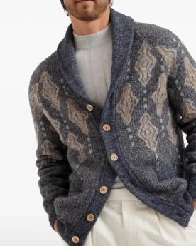 Knitted Cardigan Warm Cotton Lapel Collar Jacquard Sweaters Men’s Sweater