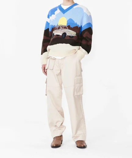 Man Sweater Intarsia Pattern Knitted Sweater 100% Cotton Hollow Out Blue Man Cardigan Sweater
