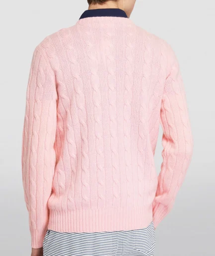 Men pink Cable Knit Pattern Cashmere Golf Sport Polo Sweater