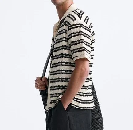Open Front Button up Cardigan Man Knitted Sweater Stripe Short Sleeve Summer Knitted Sweater for Man