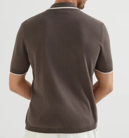 Old Money Style Men Sweater Pullover Polo Neck Men Knitwear Short Sleeve Knitted Sweater Knitted High Quality Shirt Men