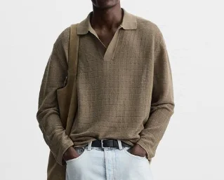 Old Money Style Men Sweater Pullover Polo Neck Men Knitwear Short Sleeve Knitted Sweater Golf Knitted Sweatshirt Blank